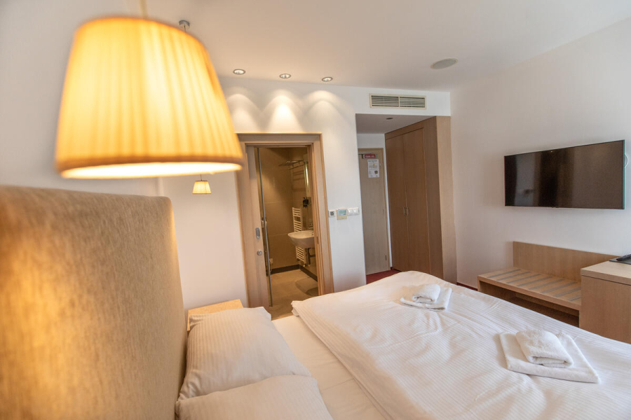 Dvojlôžková štandardná izba s klimatizáciou vhodná na relax vo dvojici, ako aj služobné cesty.