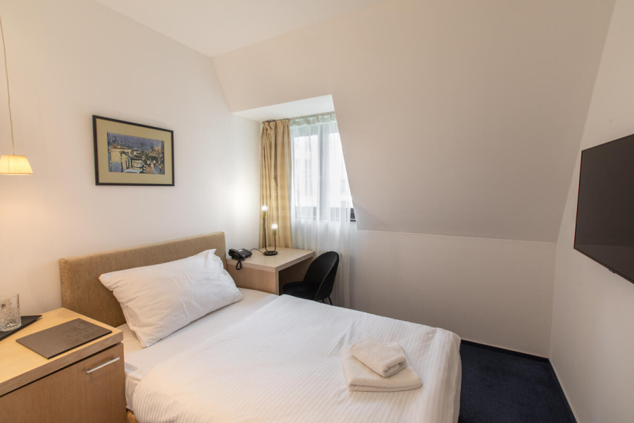 Malá jednolôžková izba s klimatizáciou je vhodná pre jednotlivca, využívaná najčastejšie na služobné cesty